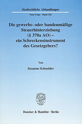 Download Die gewerbs- oder bandenmäßige Steuerhinterziehung (§ 370a AO) - ein Schreckensinstrument des Gesetzgebers? (Strafrechtliche Abhandlungen. Neue Folge) PDF